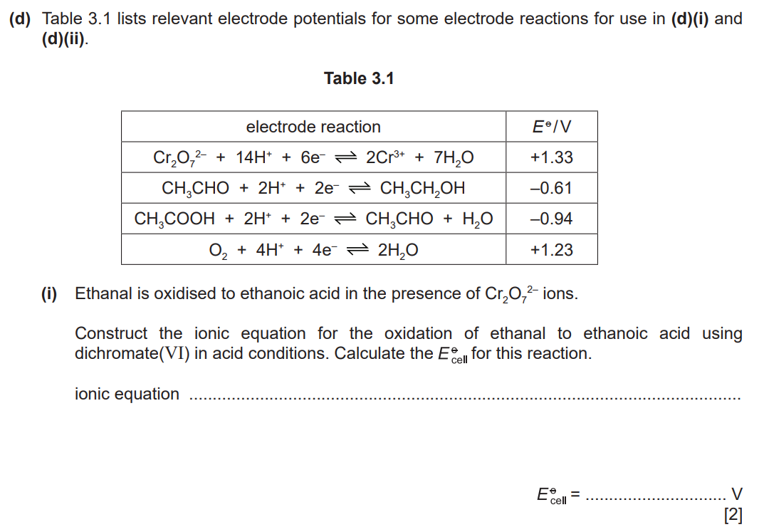 (ii) Calculate the e Eā€ŠÉµ cell = _______