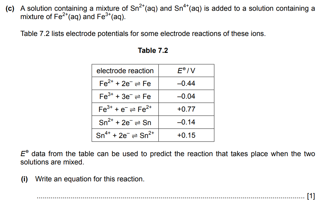 Sn2+ + 2Fe3+ → Sn4+ + 2Fe2+