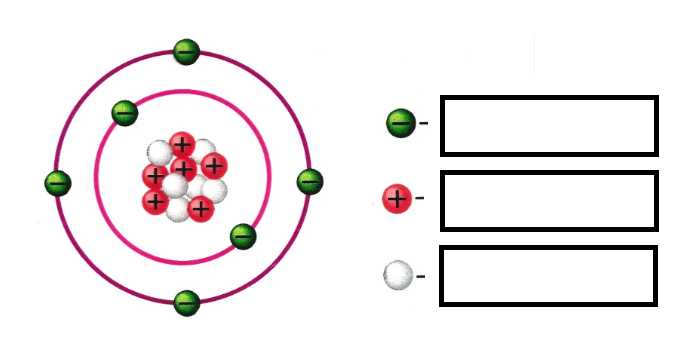 Drag the correct subatomic particle name to correctly label the key.