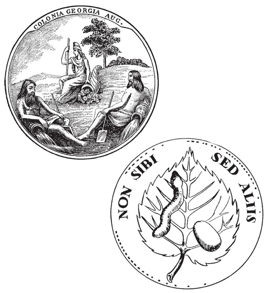 - The two urns from which water is flowing represents the Altamaha and Savannah rivers, the northern and southern boundaries of the colony.