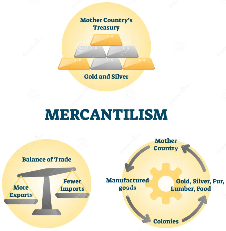 One of the driving forces behind the competition for colonies was the belief in mercantilism. According to this economic theory, colonies existed to bring profit to the mother country. They did this by supplying raw materials that the mother country lacked, such as furs, timber, and minerals. Manufacturers in Europe would turn these raw materials into finished products, such as clothing, tools, silverware, and furniture. Then, merchants would sell those products back to the colonies for profit. Often this system meant the colonists exploited the natural resources in the colonies. A nation that embraced mercantilism would become self-sufficient; it would not need to rely on outside countries for raw materials or finished products. All trade would stay within the empire, between the mother country and her colonies. An empire could then use its wealth to build a powerful army and navy to conquer its rivals and protect its colonies.