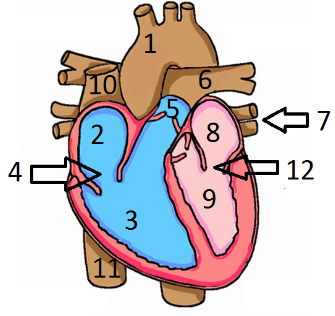 Match the correct label to the labels on the heart diagram. This is a ventral (front) view.