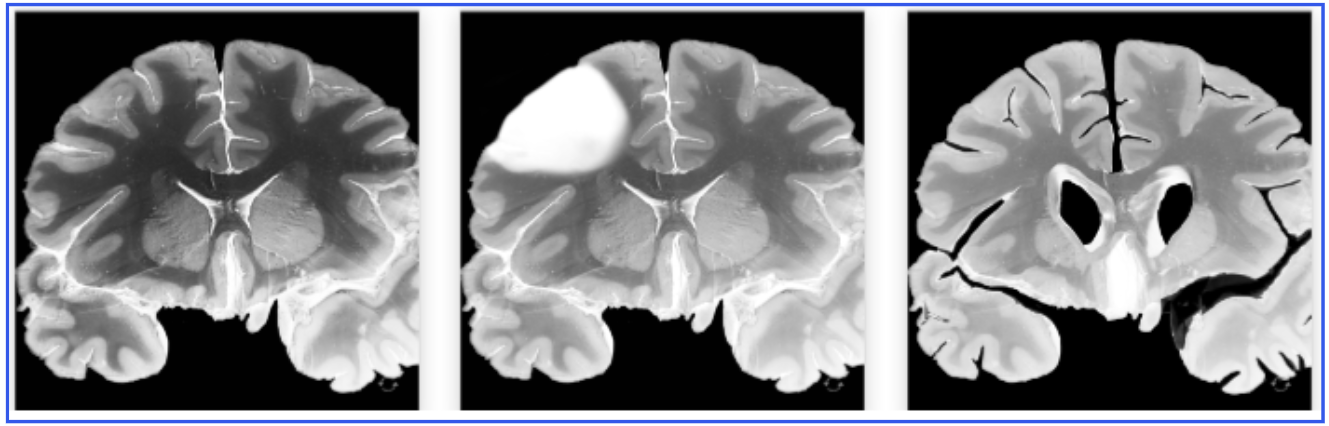 look at the histology slide of a persons brain. Identify if they are normal, have a concussion or a CTE and explain why.