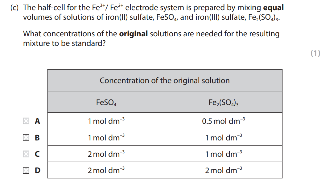 Electrode potential questions RGSHW