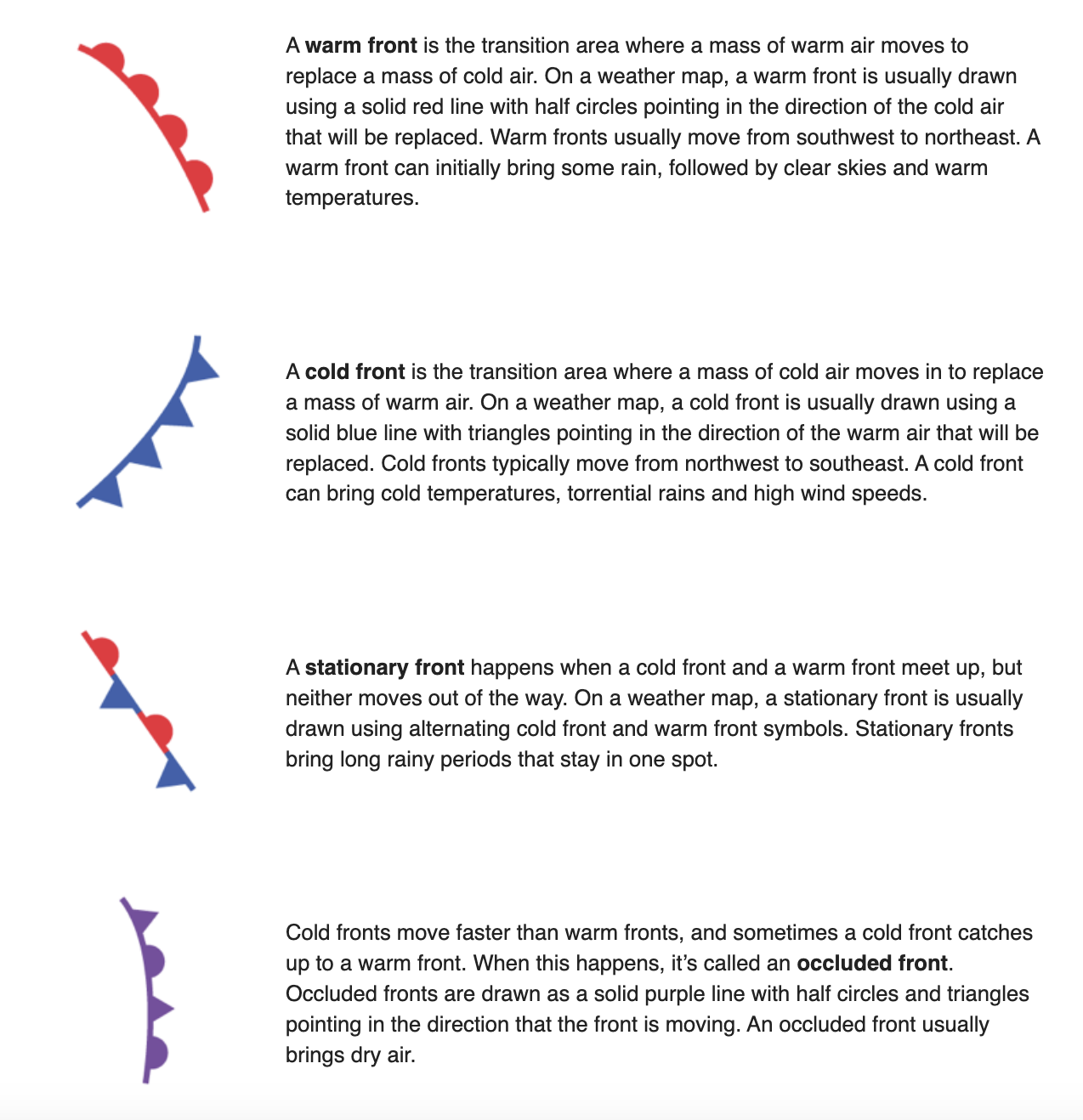 How do warm fronts usually move