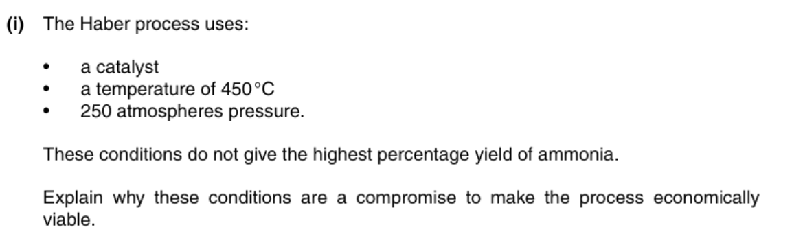 to be economically viable need to make as _________ ammonia as possible as ____________ as possible and the conditions are a ______________________ between these two factors.
