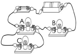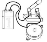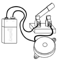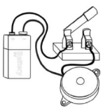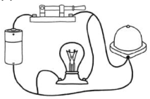 This circuit has a battery, buzzer, and switch. Which of the following best describes why the buzzer will sound when the switch is closed?