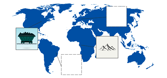 Drag the coal bed and similar mountain range to the appropriate positions on the map.