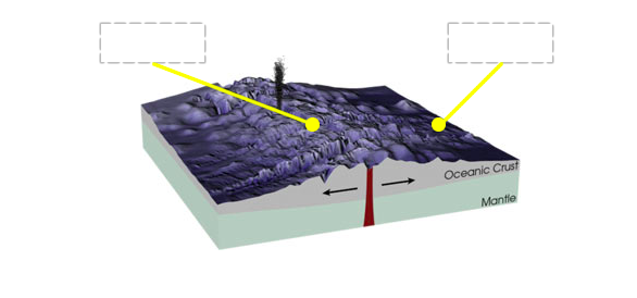 3. During the process of sea-floor spreading magma rises through the cracks in the mid-ocean ridges, cools, and hardens to form new oceanic crust.