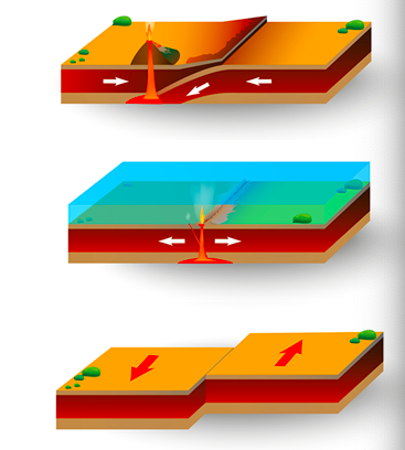 1. Plates can meet at any of three types of plate boundaries: divergent, convergent, and transform.