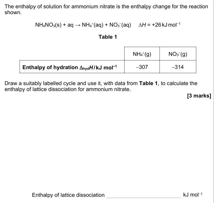 1 . 1 Define the term enthalpy of lattice dissociation.