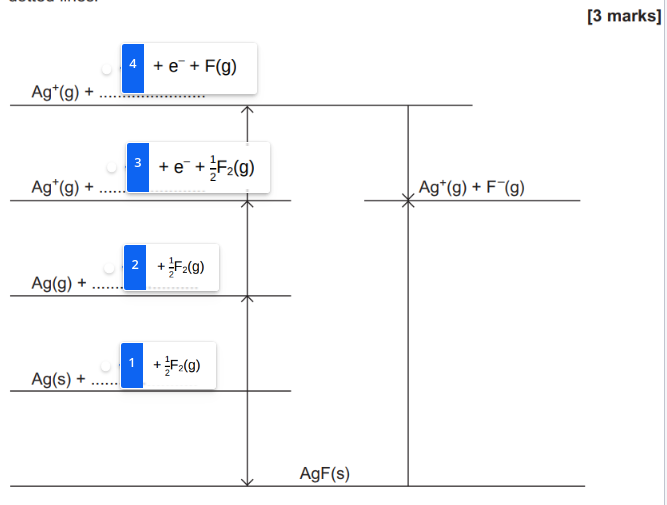 Born Haber cycle = 𝟏/𝟐 E(F–F) + 732 + 289 + +203 = 348 + 955