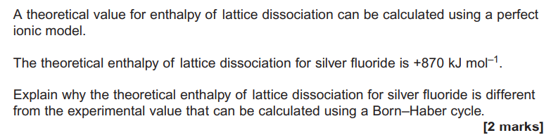 Experimental lattice enthalpy value allows for: