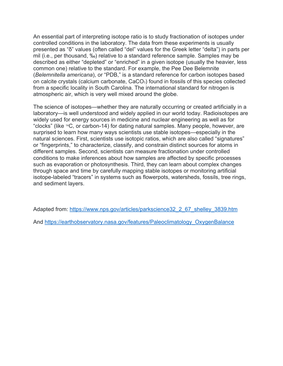 Explain an example of how scientists use isotopes to study complex changes in the environment through space and time? Be sure to include what they measure and what they can learn from the measurements.