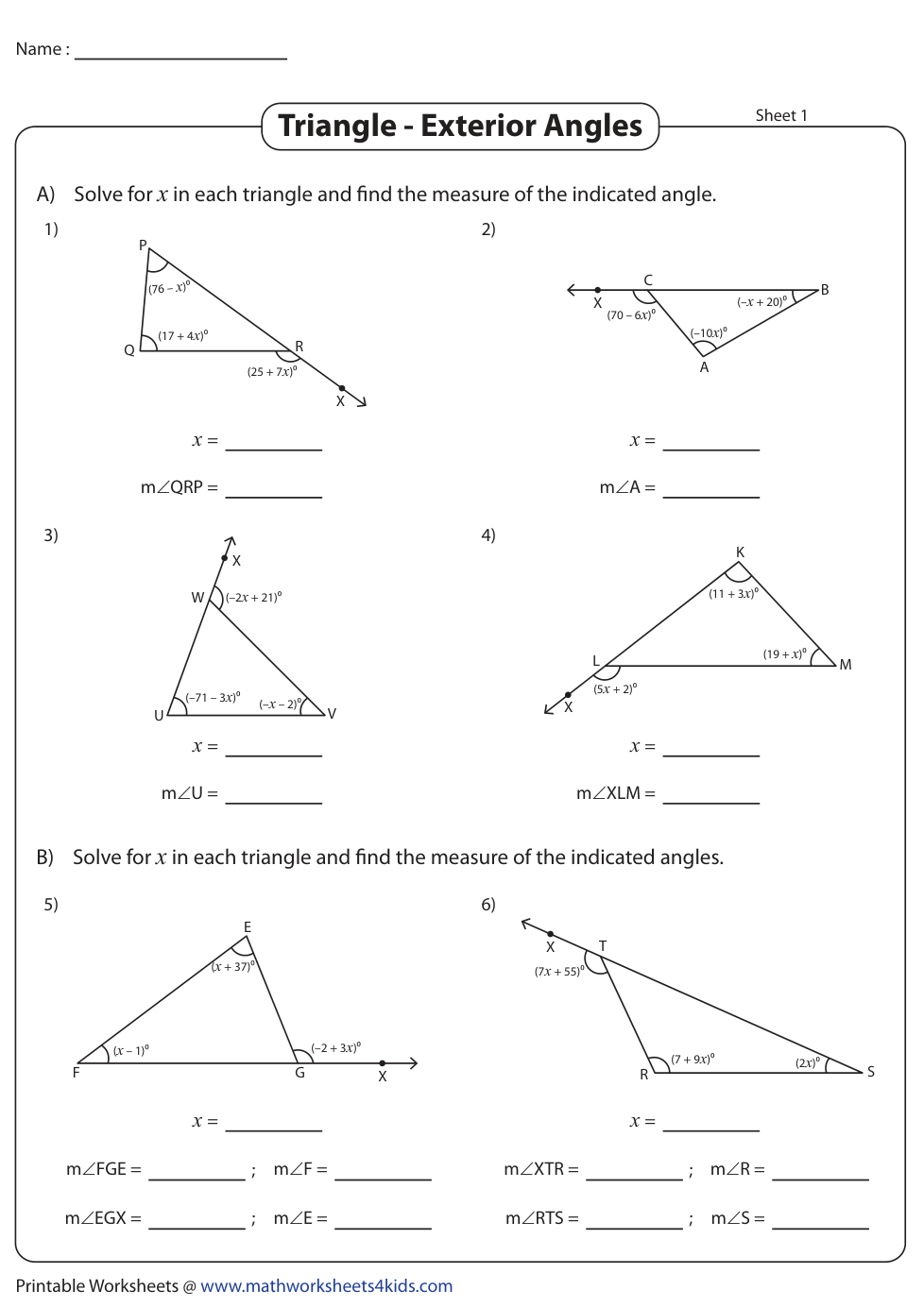 U3_Day 4 Find Exterior Angles - Algebra