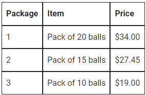 Makeilia plays soccer and wants to buy some soccer balls. The store sells soccer balls in various packages as shown in the table below.