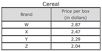 The table shows the prices of 4 different brands of cereal Ramey bought for her daycare center.