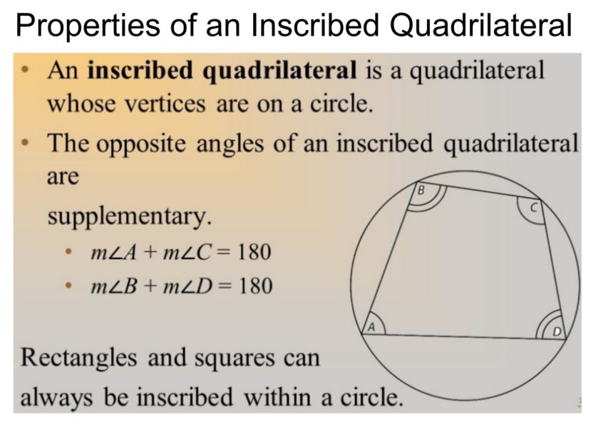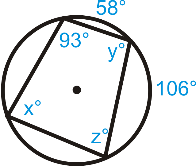 A quadrilateral ABCD has the given angle measures. Select all measurements which could come from a cyclic quadrilateral.