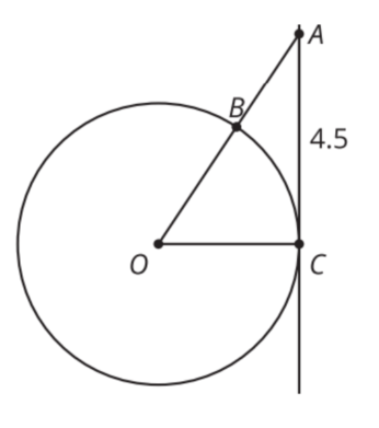 Line AC is tangent to the circle centered at O with radius 3 units. The length of segment AC is 4.5 units. Find the length of segment AB. Round your answer to the nearest tenth.