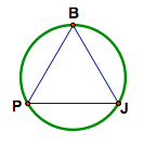 Equilateral triangle PB&J is inscribed in a circle as shown. Determine the measure of arc PJB.