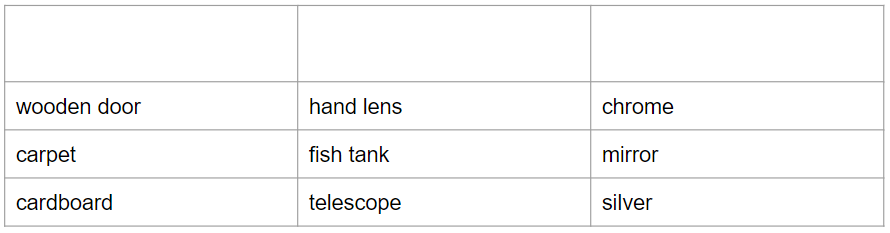 Students collected items around the room and tested them with a flashlight. They sorted the items in the table below. What would the BEST title be for each column?