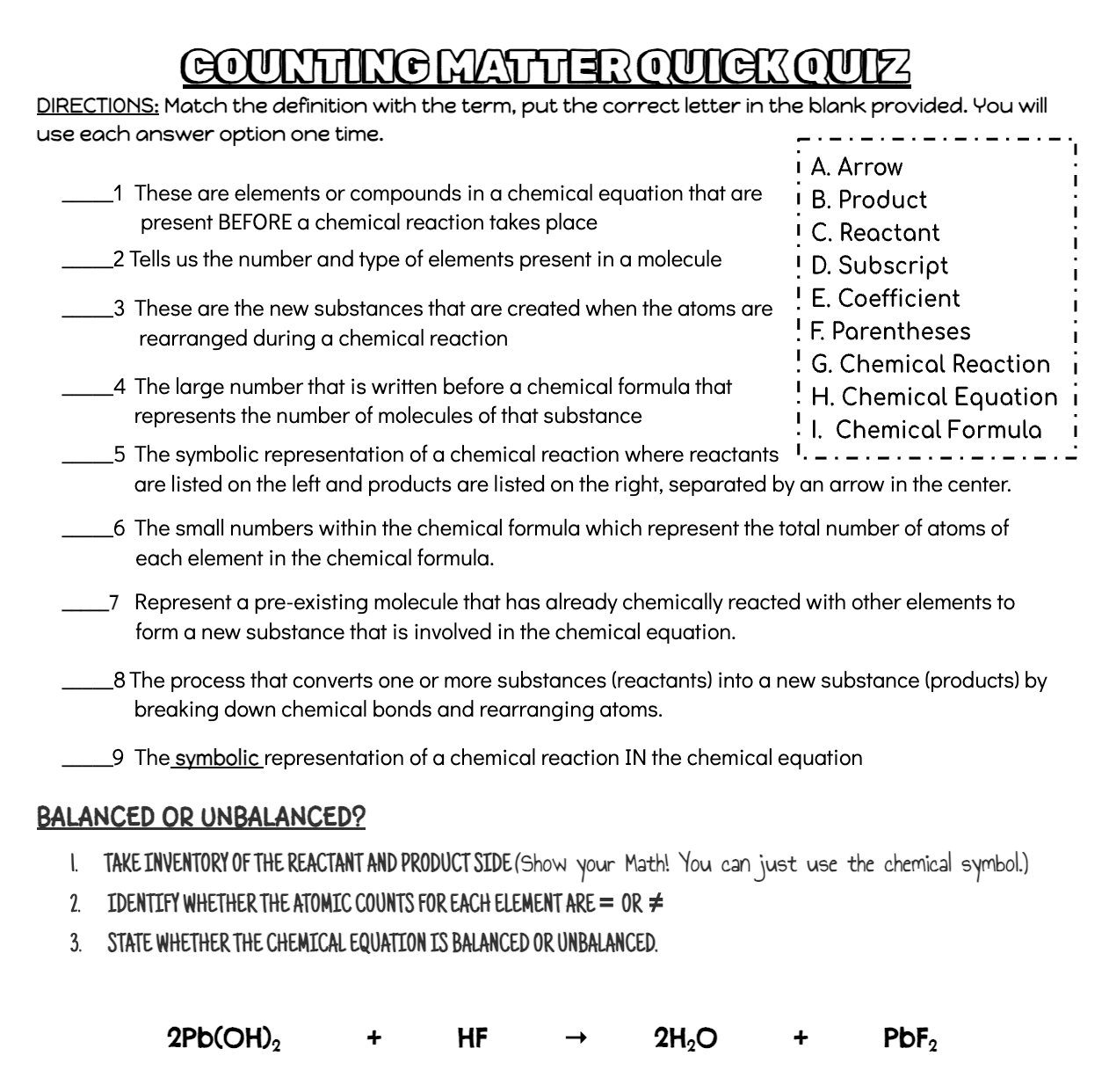 2Pb(OH)2 + HF → 2H2O + PbF2- Select every element that you put a ≠ between. (which ones had different counts)