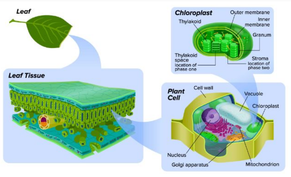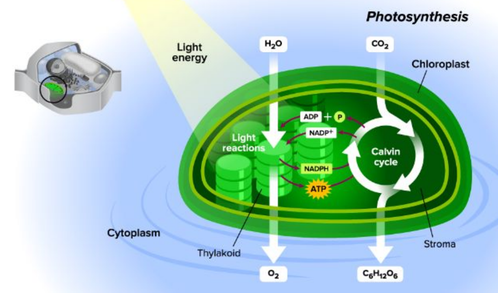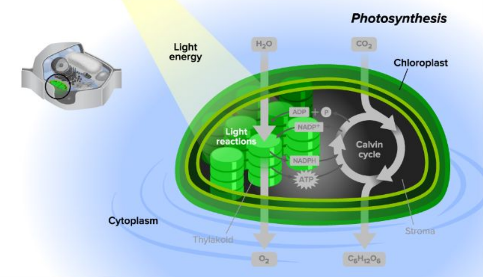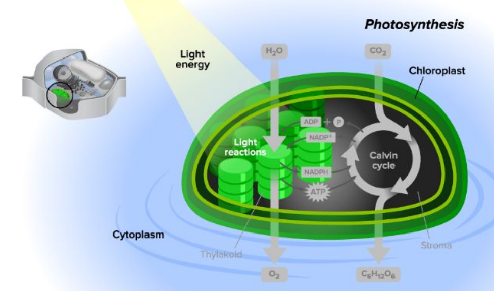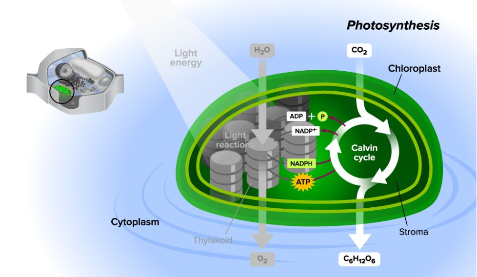 - Carbon Dioxide (CO2) diffused into stroma