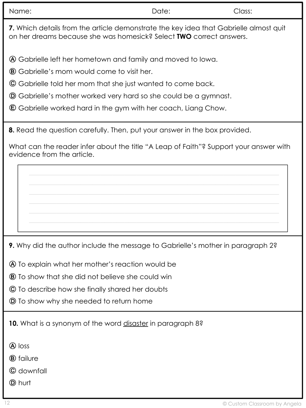 Which sentences best support the author’s message about Gabrielle not giving up on her dreams?