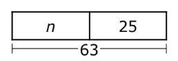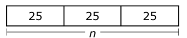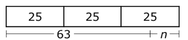 Baxter is selling candles for a school fundraiser. He has 3 boxes of candles. Each box contains 25 candles. Baxter sold 63 candles. Which diagram shows a way to find n, the number of candles that Baxter has left?