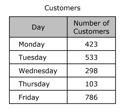 The table shows the number of customers that went to the restaurant last week.