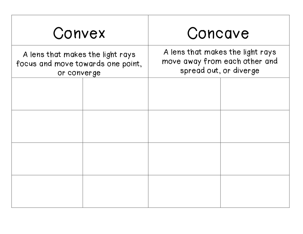 This is a simple sort. Students drag and drop images under concave or convex.