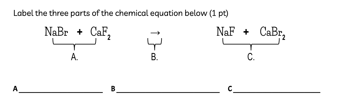 Letter A. (LEFT side of the chemical equation) is called the __________