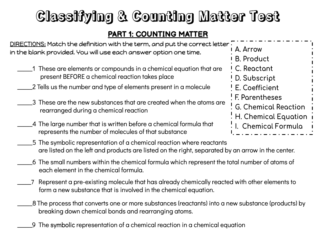 Made of 2 or more DIFFERENT types of atoms chemically bonded together, to create one molecule. (You will use some answers more than once)
