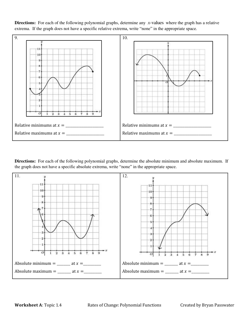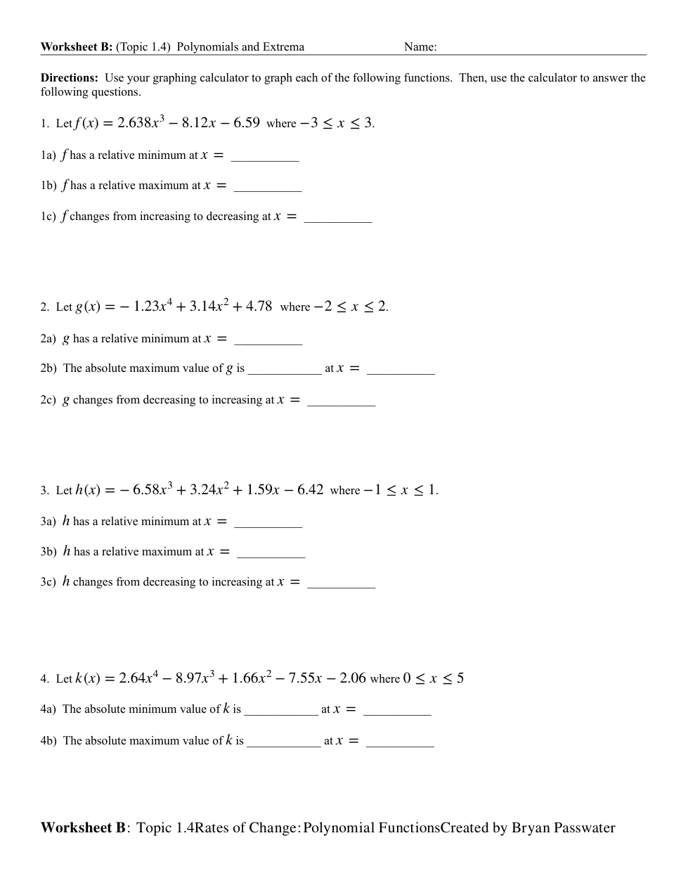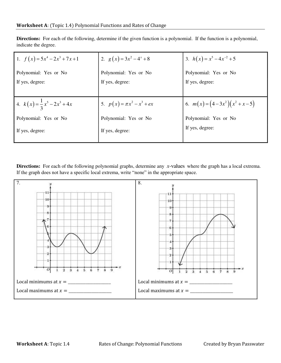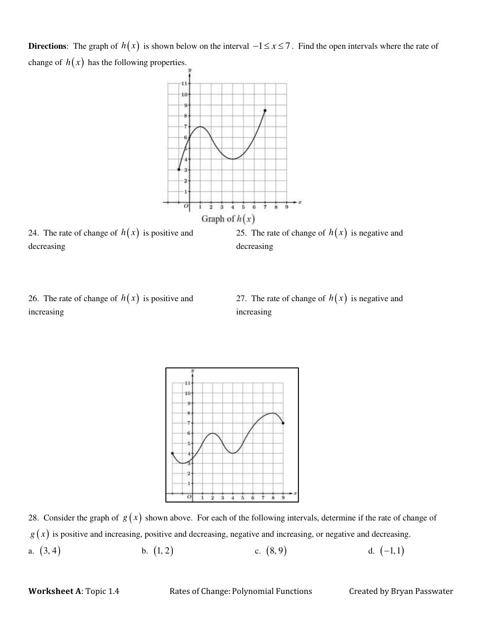WS Topic 1.4 (Polynomial Functions & Rates of Change)