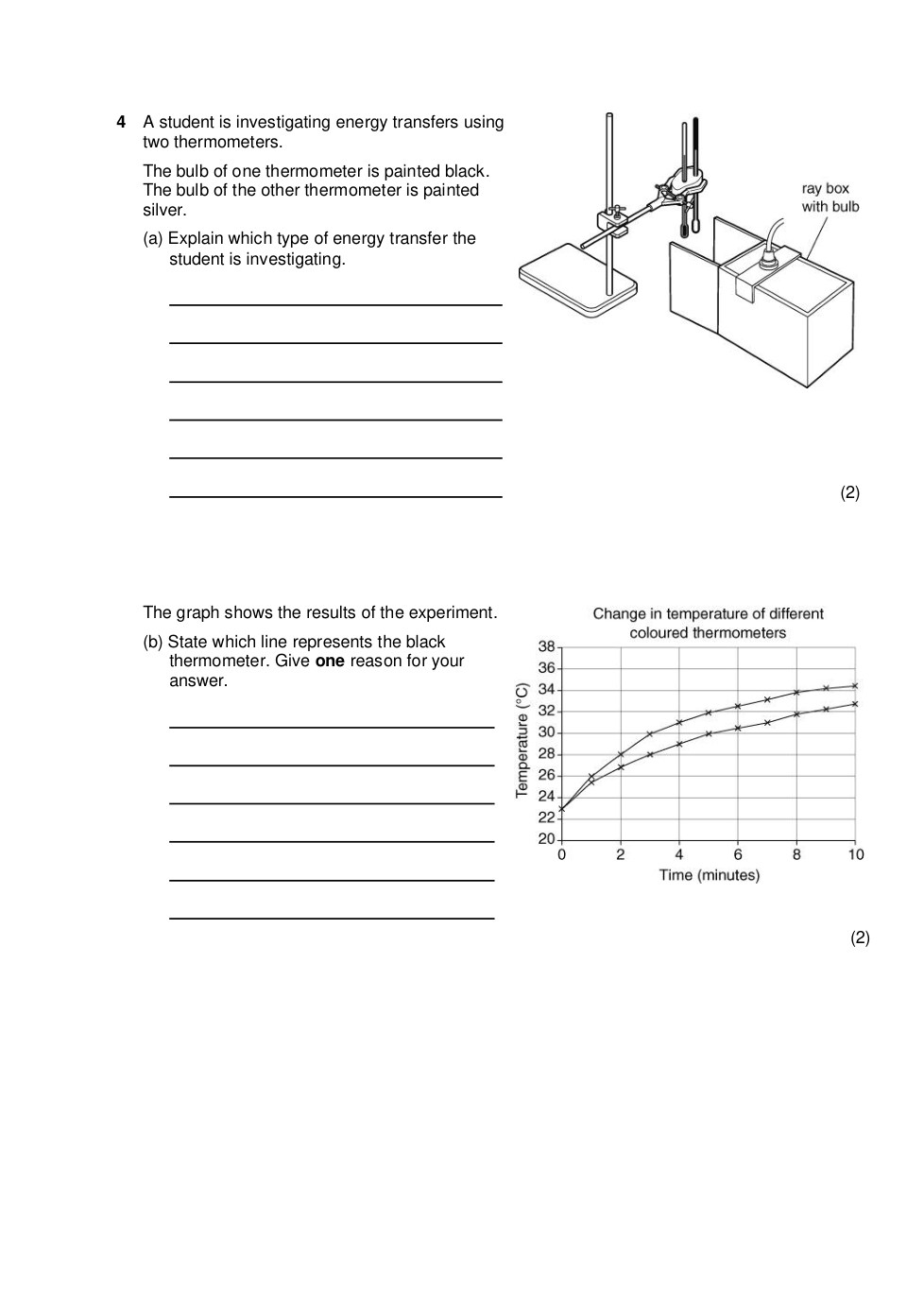 A student is investigating energy transfers using two thermometers. The bulb of one thermometer is painted black. The bulb of the other thermometer is painted silver. Explain which type of energy transfer the student is investigating.