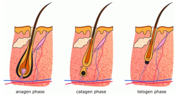 telogen phase | arrow_right_alt | hair follicles are dormant during this stage; hairs are easily shed |