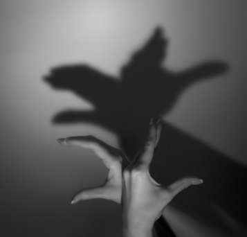 The shadow has the same shape as the woman’s hands because __________