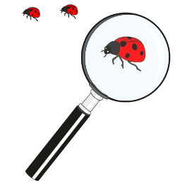 A student used a magnifying glass to observe a lady beetle closely.