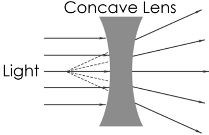 A concave lens is a curved, transparent glass that light can pass through. An example is shown.