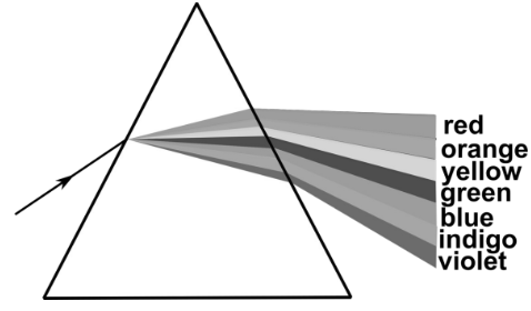 The diagram shows what happens when white light travels through the air into a prism.