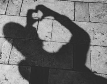 In this photo, a person uses his hands to make a heart shadow on the ground.