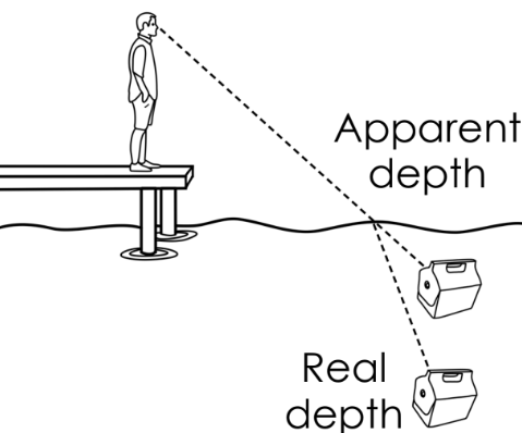Why does the cooler appear to be closer to the surface than it actually is?