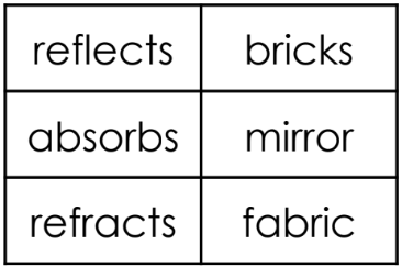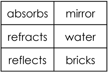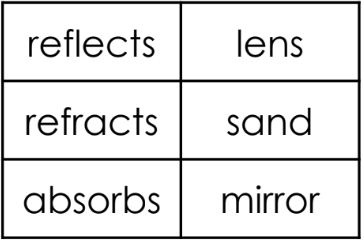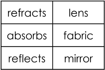Which chart correctly categorizes how light behaves when it strikes certain objects?