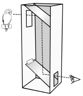 through the hole, she can see the bird. Why can the student see the bird?