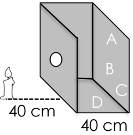 Which letter best represents where the candlelight will appear brightest on the opposite wall of the box?