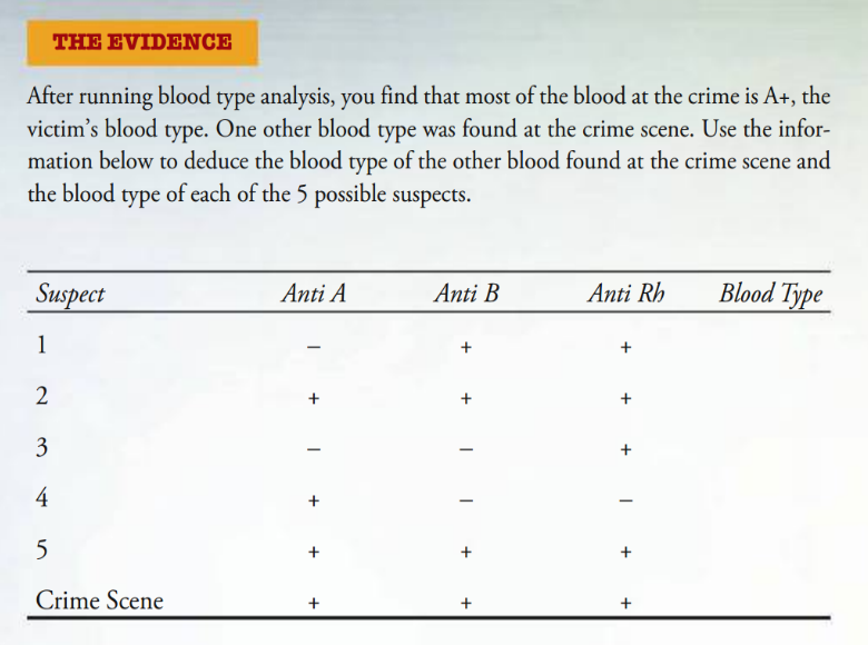All of the blood at markers 1-4 is A+. Assuming this is the victim's blood, propose an explanation as to how the victim's blood was deposited in these locations.