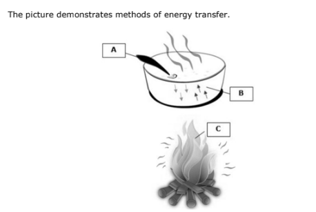 Which type of energy transfer is occurring at location B?