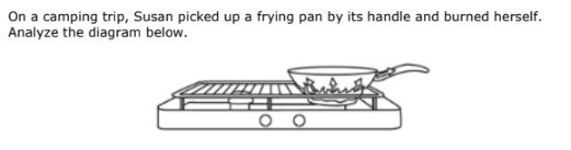 Which explanation correctly explains why the handle of the frying pan is so hot?