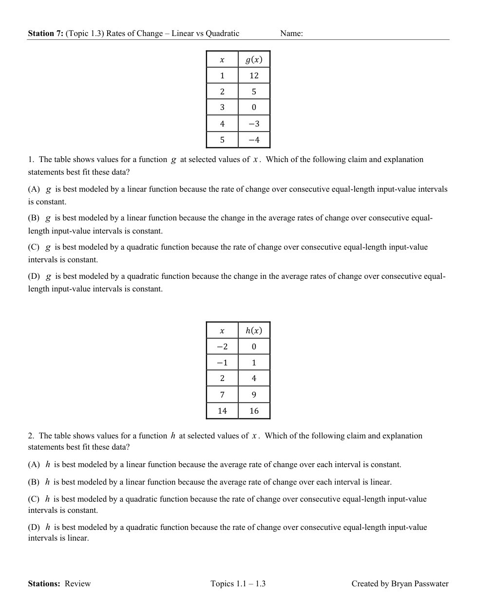 AP PRE-CALCULUS Topics 1.1-14. REVIEW