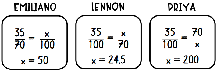 Ms. Delmar’s students solved the problem: 'What is 35% of 70?' Who solved the problem correctly?